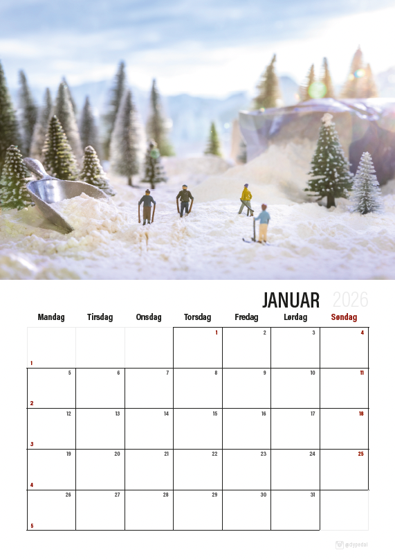 Nytt bilde fra Tiny People for hver måned. Følg de små miniatyrene gjennom et helt år i denne enkle og gode kalenderen.